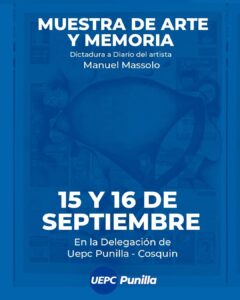 La Dictadura a Diario/Duelo a Destiempo puede visitarse en la delegación de UEPC en Cosquín (Perón 428) el jueves 15 y el viernes 16 de septiembre, de 10 a 21 hs.