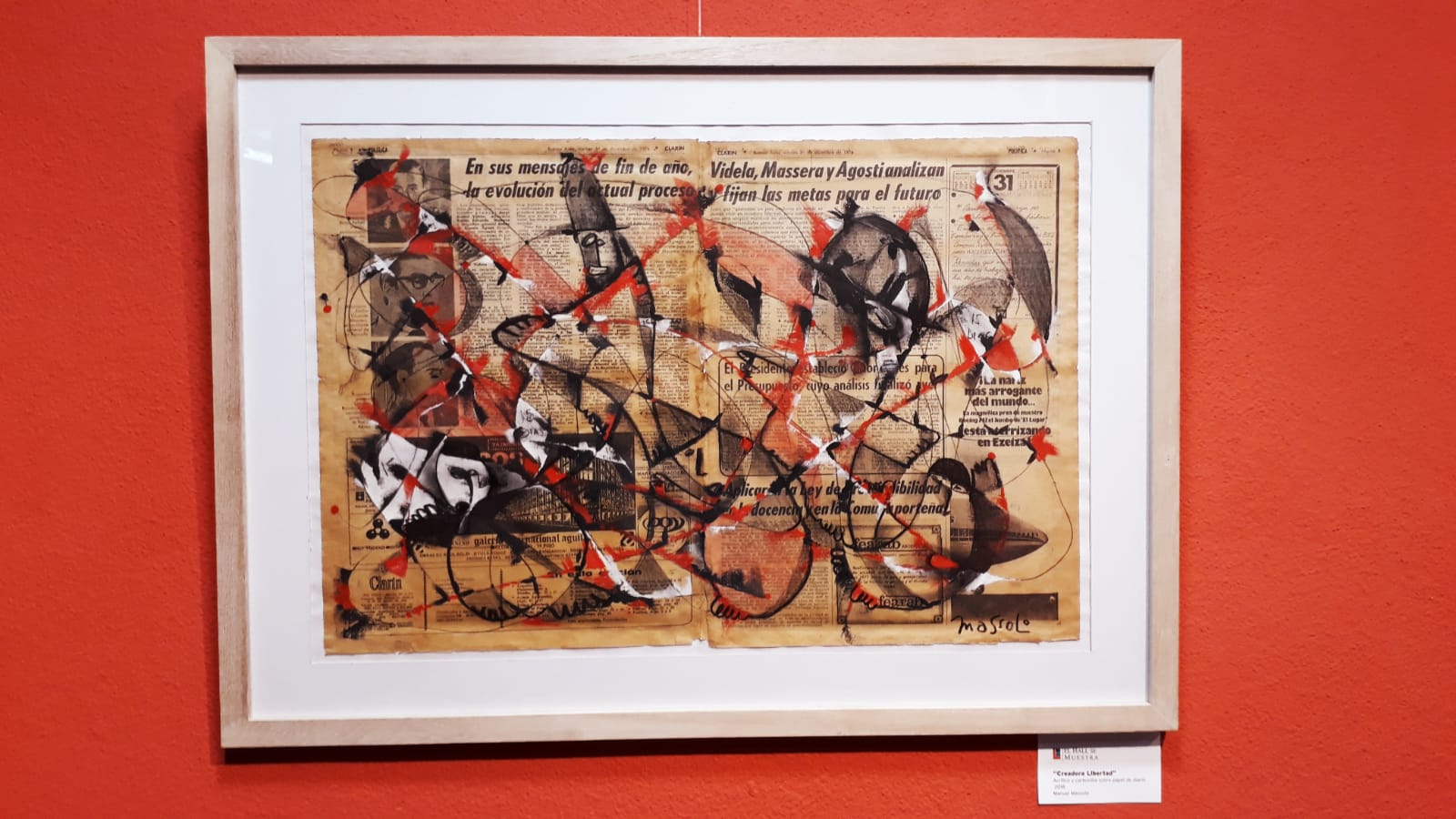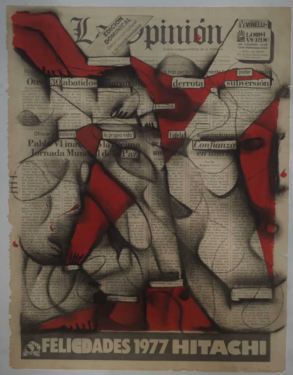 Se expone en Cosquín la obra del artista plástico Manuel Massolo “Dictadura a Diario / Duelo a Destiempo”. Se trata de intervenciones con carbonillas, acrílico y acuarela sobre páginas de diarios de los años de dictadura cívico militar en Argentina.