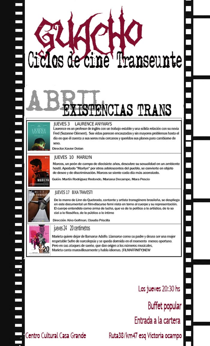 Los ciclos de cine GUACHO proponen espacios de cine y roska activa y colectiva. Con temáticas cíclicas en diferentes tiempos y lugares.
