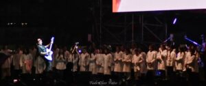 Cuando el concierto atravesaba el ultimo tramo, subió al escenario un grupo de niñes con guardapolvos escolares, que junto a su profe se acomodaron en forma de coro y para sorpresa de las miles de personas presentes, comenzaron a entonar las estrofas de “El Rebelde”, una de las canciones más conocidas de la banda.