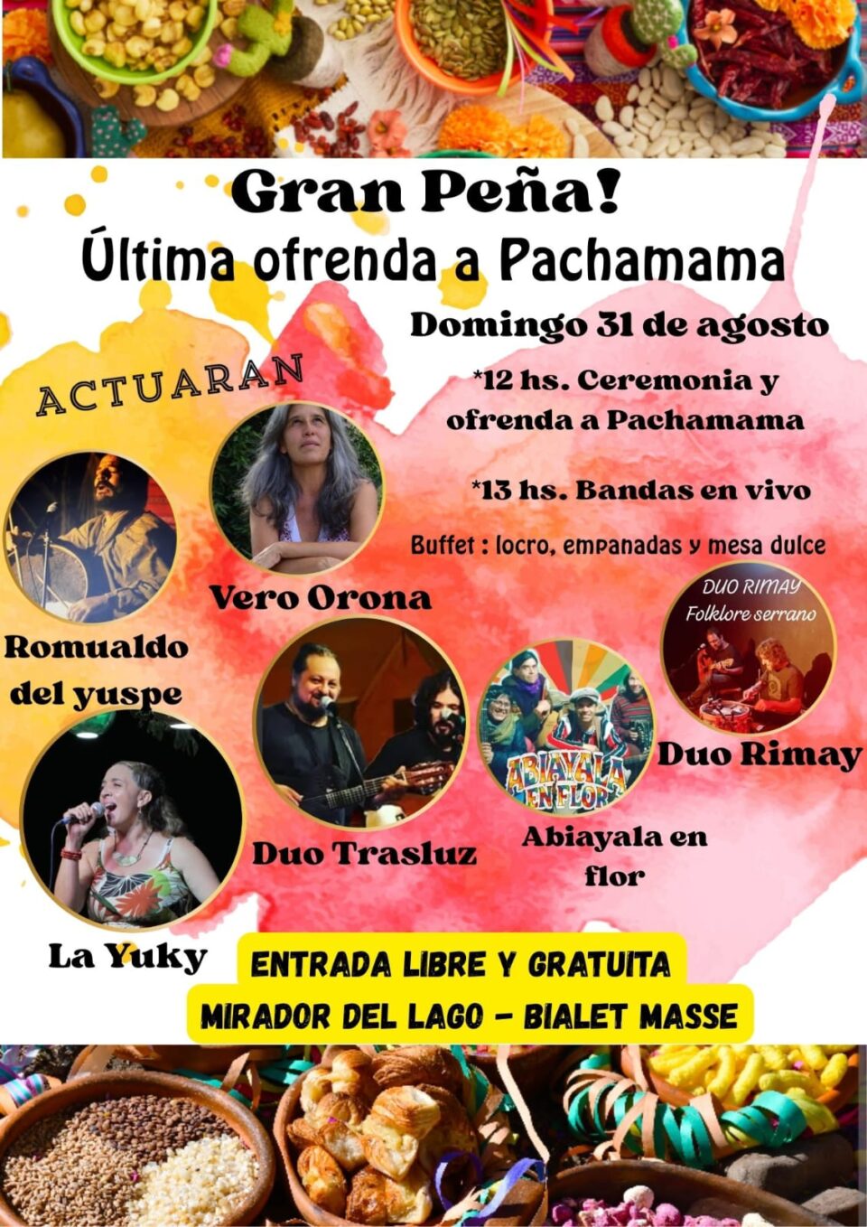 *Corpachada y Peña en _”La Punillita” 30 agosto, 2025 1 Este Domingo 31, 12hs. Despedimos y agradecemos a la pacha. Música en vivo. Artistas locales. Comida casera. Bebidas espírituosas. Un lugar de encuentro. Dirección por MP 3541 64-7952