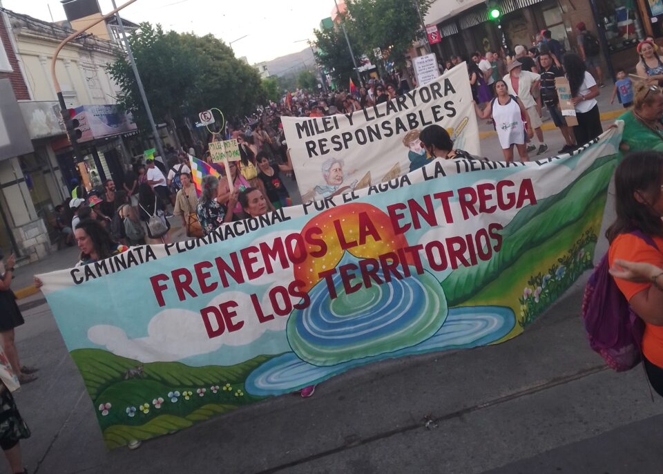 El sábado 1ro. de febrero una multitud se congregó en la ciudad de Cosquín mientras se vivía la previa de una nueva luna del festival nacional de folklore. Con las calles repletas de turistas, la 17ª Caminata Plurinacional por el Agua la Tierra y la Vida desplegaba consignas, expresiones artísticas y cánticos que visibilizaron la difícil situación en la que se encuentra el medioambiente en la provincia de Córdoba, las responsabilidades político/empresariales implicadas y la avanzada represiva.