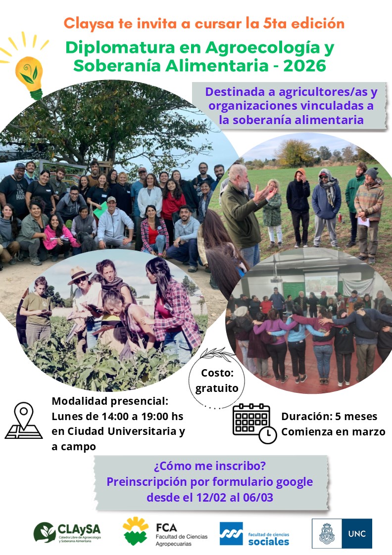 En marzo comienza la 5ta edición de la Diplomatura en Agroecología y Soberanía Alimentaria en la Universidad Nacional de Córdoba.