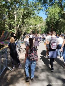 Si bien parece que la sombra en el predio escasea, hay muchos stands de marcas publicitarias donde podes ir a sentarte o acostarte y descansar un ratito. En estos espacios además de refrescarte a la sombra, se realizan juegos y trivias donde te podés ganar algún premio y además llevarte información importante de interés general. En esta ocasión, notamos que las trivias en su mayoría se trataban sobre el cuidado del medio ambiente, reutilización de recursos naturales y reducción de la huella de carbono en el planeta. Siguiendo esta temática ecofriendly, pudimos apreciar recolectores de residuos y cestos